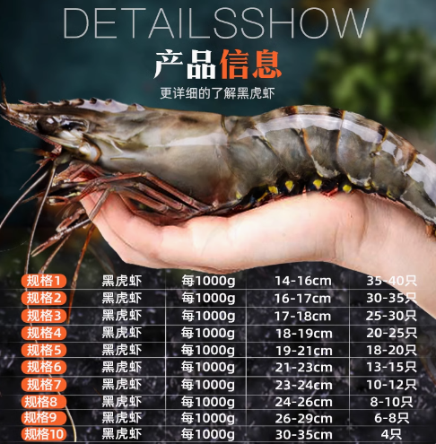 黑虎虾大虾新鲜超大鲜活速冻海鲜水产老虎虾特大基围虾竹斑九节虾