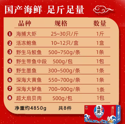 海鲜大礼包海鲜礼盒鲜活冷冻套餐春节过年年货送礼